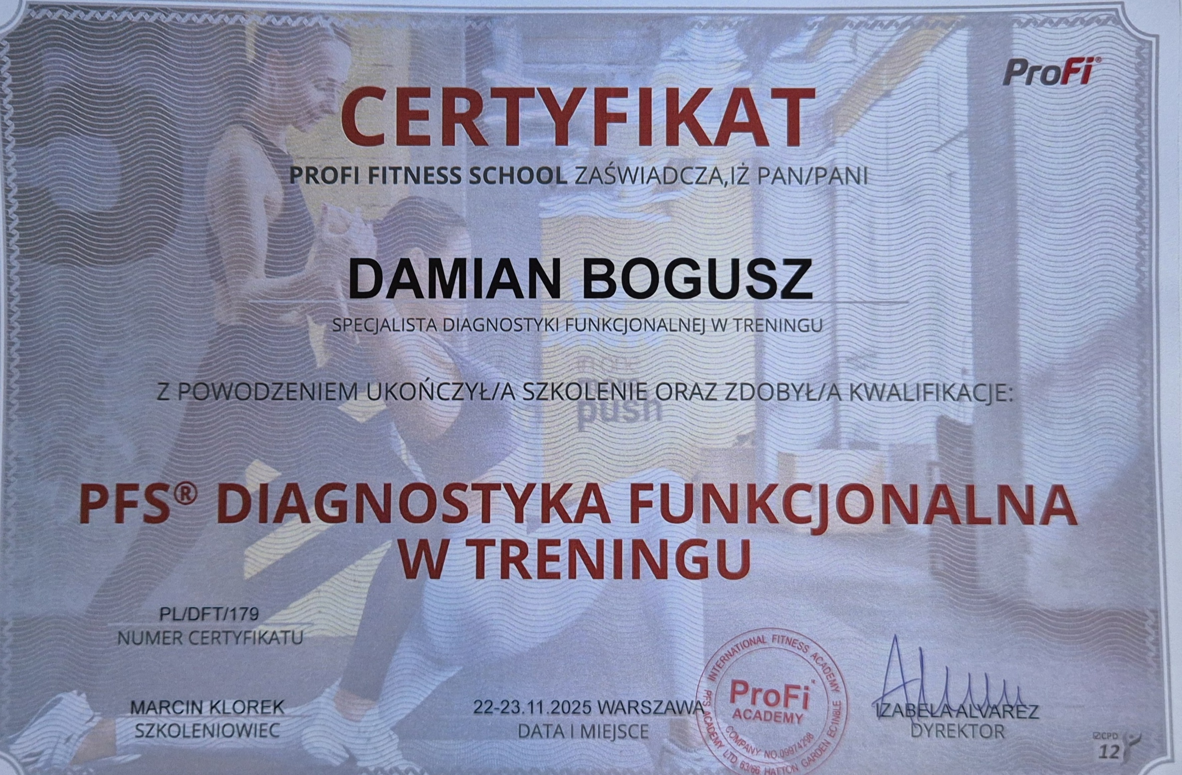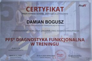 Cześć! Mam na imię Damian. Jestem magistrem wychowania fizycznego, byłym funkcjonariuszem jednostki specjalnej oraz certyfikowanym trenerem personalnym, trenerem lekkiej atletyki oraz instruktorem sportów siłowych i fitness. Pracuję na terenie Wrocławia. Sport od wielu lat jest nie tylko moją pracą, ale przede wszystkim pasją. Byłem wielokrotnym medalistą mistrzostw województwa, makroregionu śląskiego oraz uczestnikiem mistrzostw Polski w biegach długodystansowych. Obecnie startuję w ultramaratonach górskich.